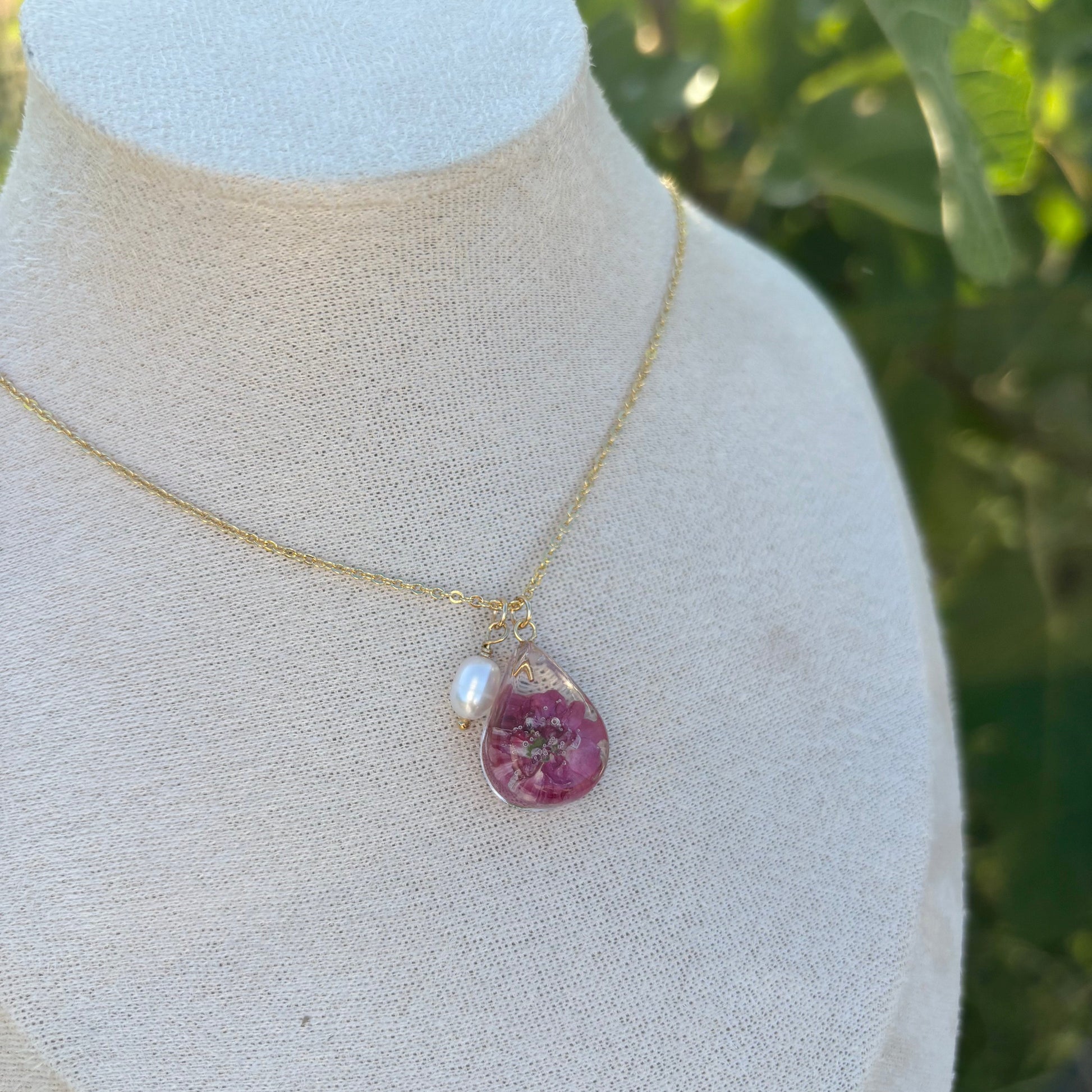 Care instructions: I use pressed or dried flowers to keep the beautiful colors of the flowers. However, the color may change or fade over time due to natural processes. Storing it away from direct sunlight when not in use will keep its color even longer. Please avoid direct contact with chemicals such as sunscreen and perfumes for the gold materials.
