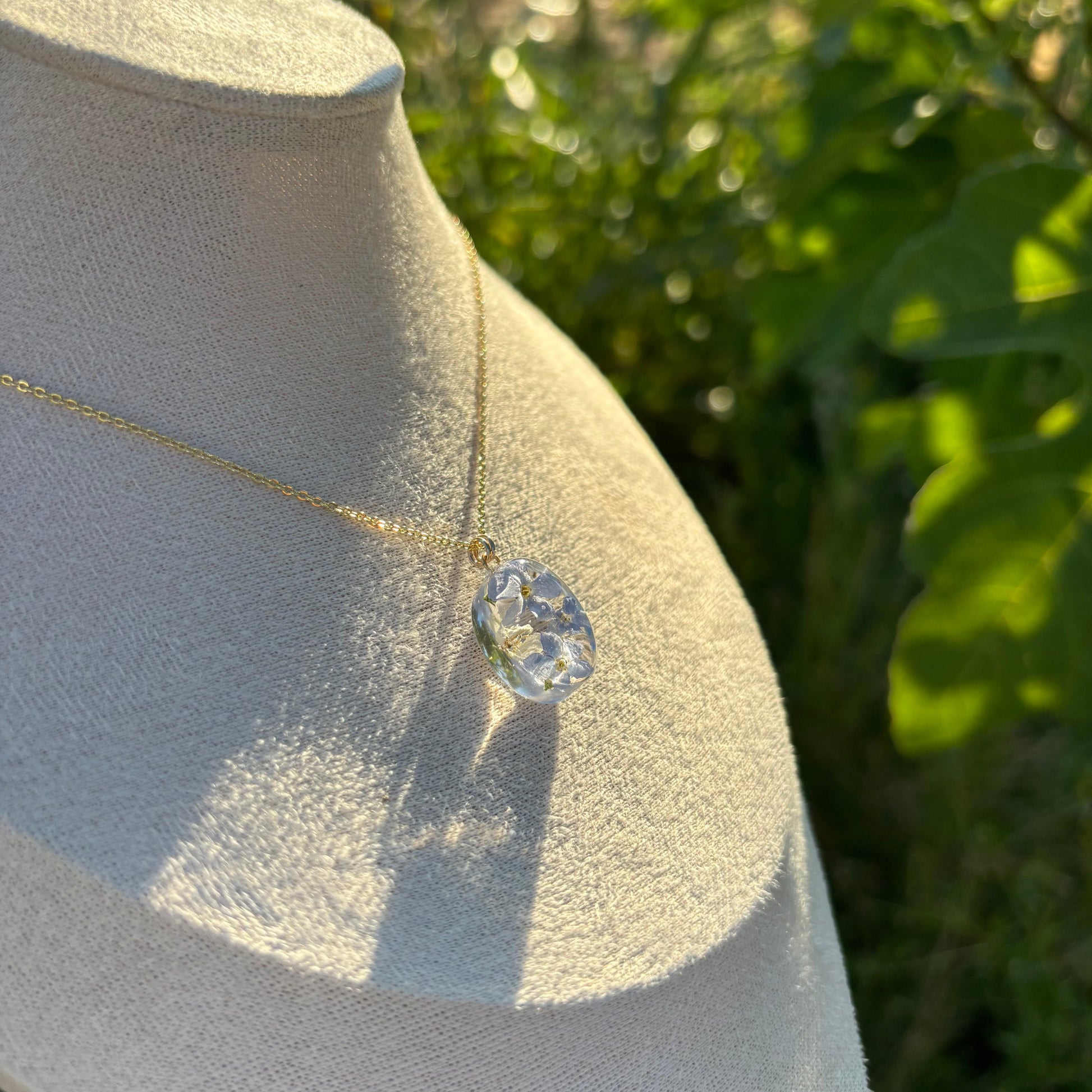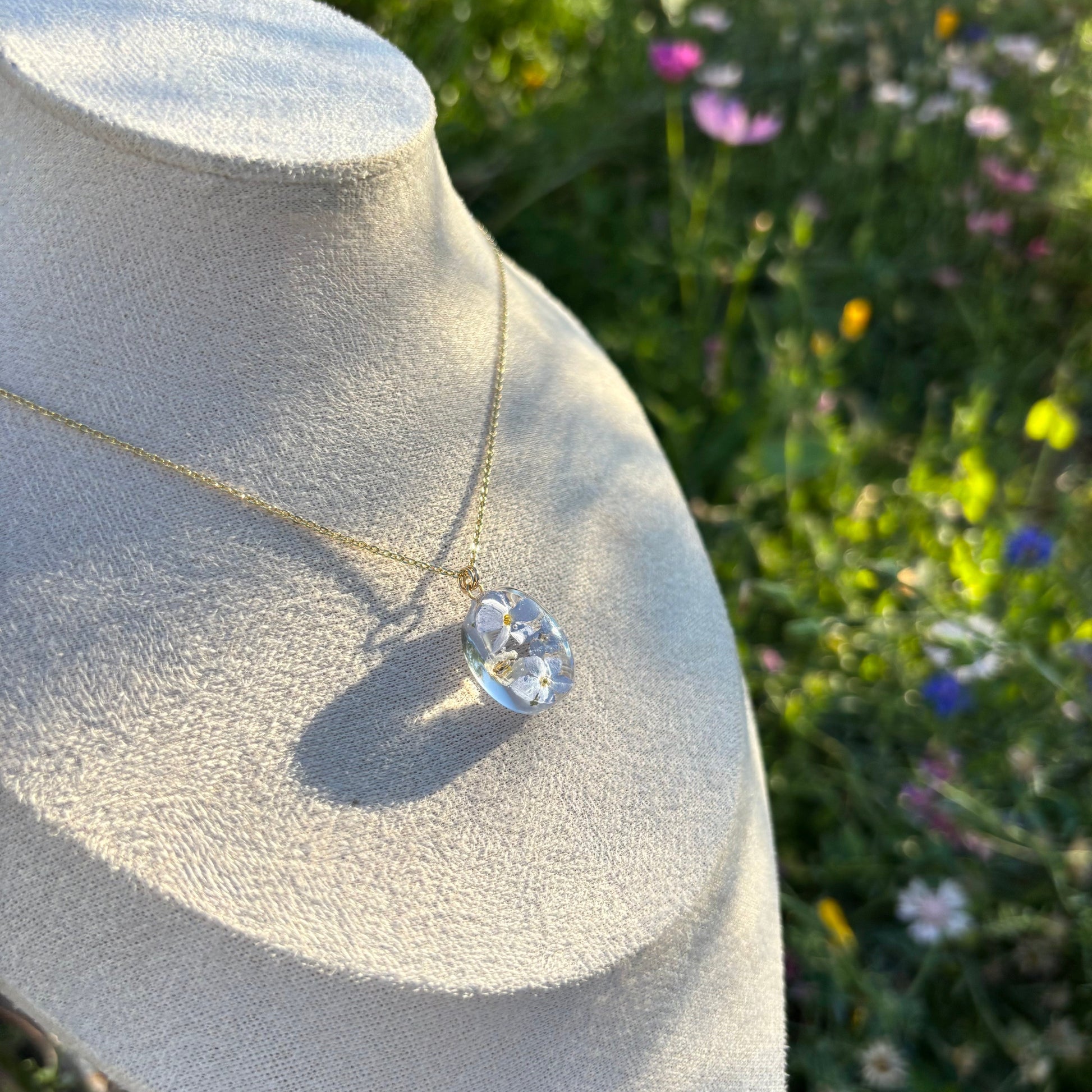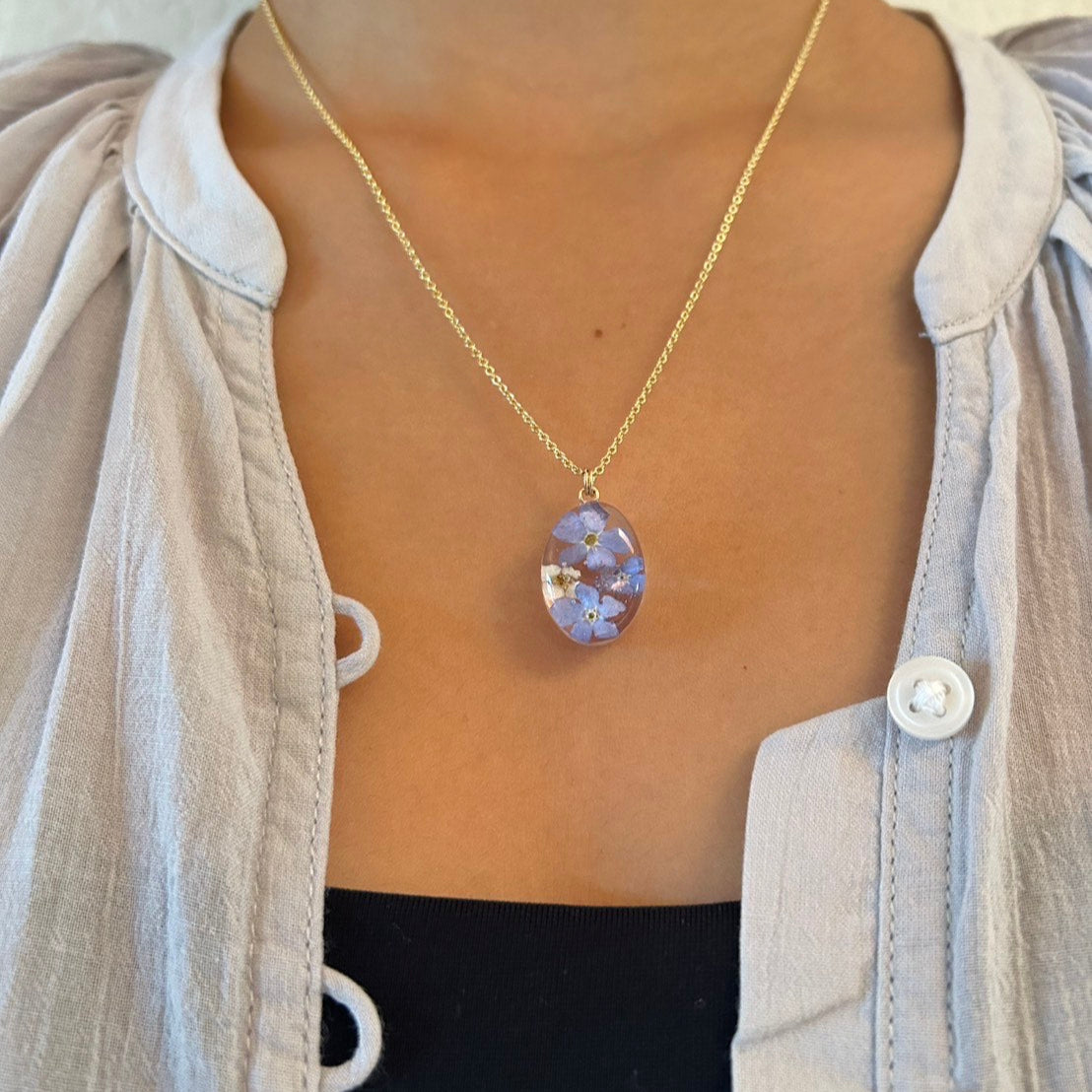 Care instructions: I use pressed or dried flowers to keep the beautiful colors of the flowers. However, the color may change or fade over time due to natural processes. Storing it away from direct sunlight when not in use will keep its color even longer. Please avoid direct contact with chemicals such as sunscreen and perfumes for the gold materials.