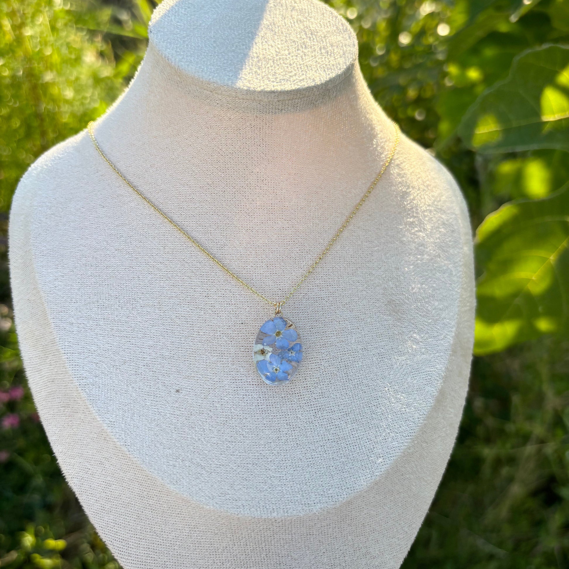 Made with real Forget me nots and white alyssum flowers.