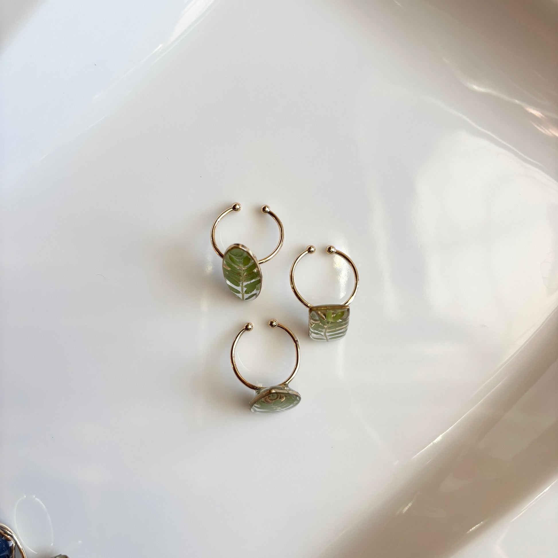 Pressed green leaf Ring