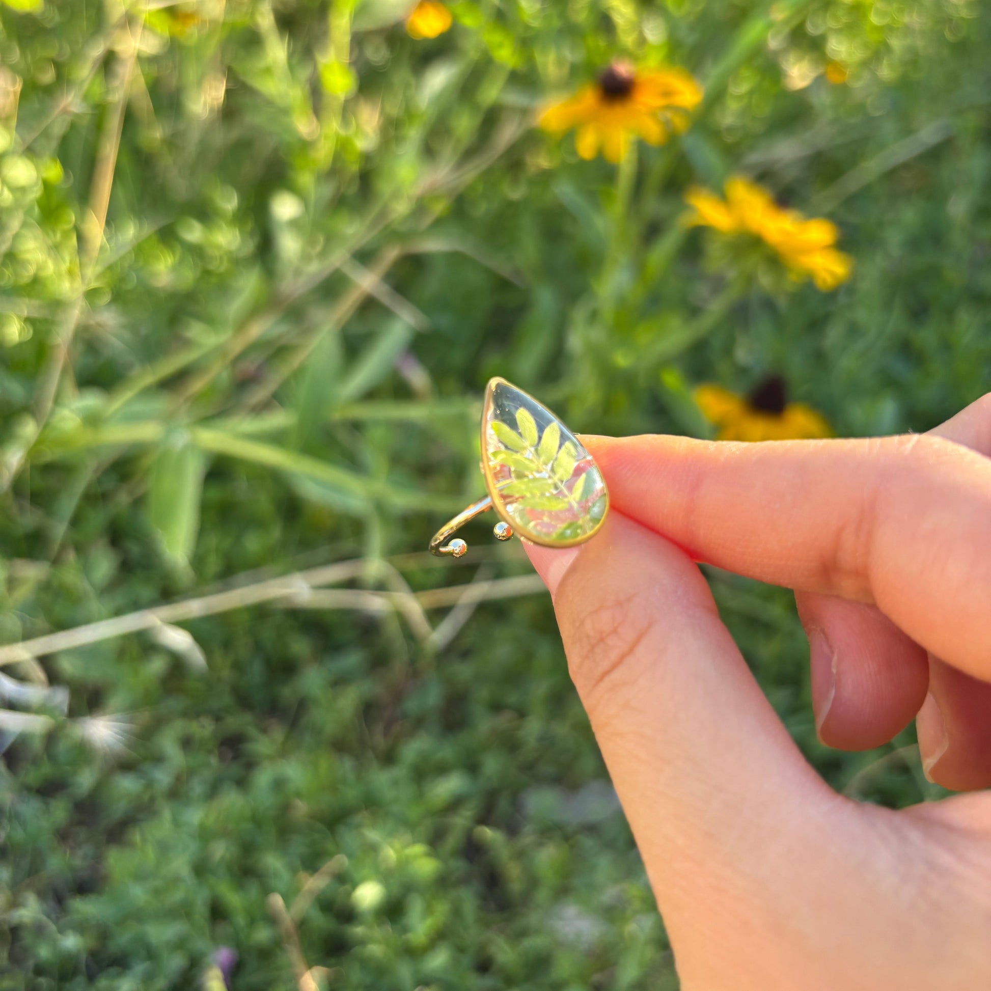 Care instructions: I use pressed or dried flowers to keep the beautiful colors of the flowers. However, the color may change or fade over time due to natural processes. Storing it away from direct sunlight when not in use will keep its color even longer. Please avoid direct contact with chemicals such as sunscreen and perfumes for the gold materials.